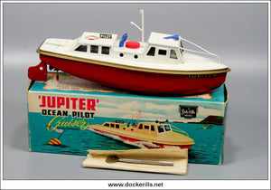 Jupiter Ocean Pilot Boat, Sutcliffe Pressings Ltd., England. Clockwork Toy Boat.