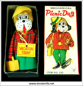 Picnic Dog, Vintage Tin Plate Clockwork / Wind-Up Novelty Toy, Yonezawa, Japan.