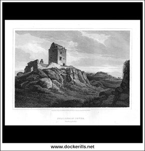 Elibank Tower, Peebleshire, Scotland. Antique Print, Copper Plate Engraving 1815