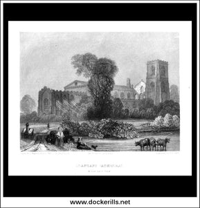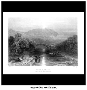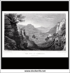 The Wye At Aberedwy, Radnorshire, Wales. Antique Print, Steel Engraving c. 1830.