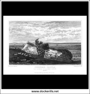 Stone Castle Near Gravesend, Kent, England. Antique Print, Steel Engraving 1829.