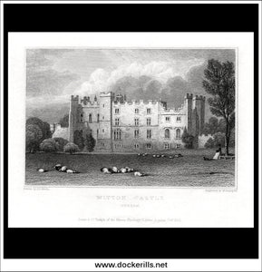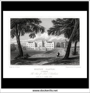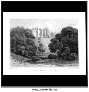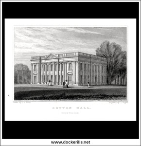 Knebworth House, Hertfordshire, England. Antique Print, Steel Engraving c. 1830.