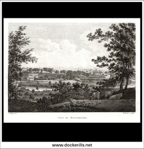 View Of Manchester, Lancashire, England. Antique Print, Copper Plate Engraving 1793.
