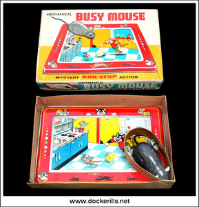 Busy Mouse. Vintage Tin Plate Clockwork Novelty Toy, T.P.S. Toplay Ltd., Japan.