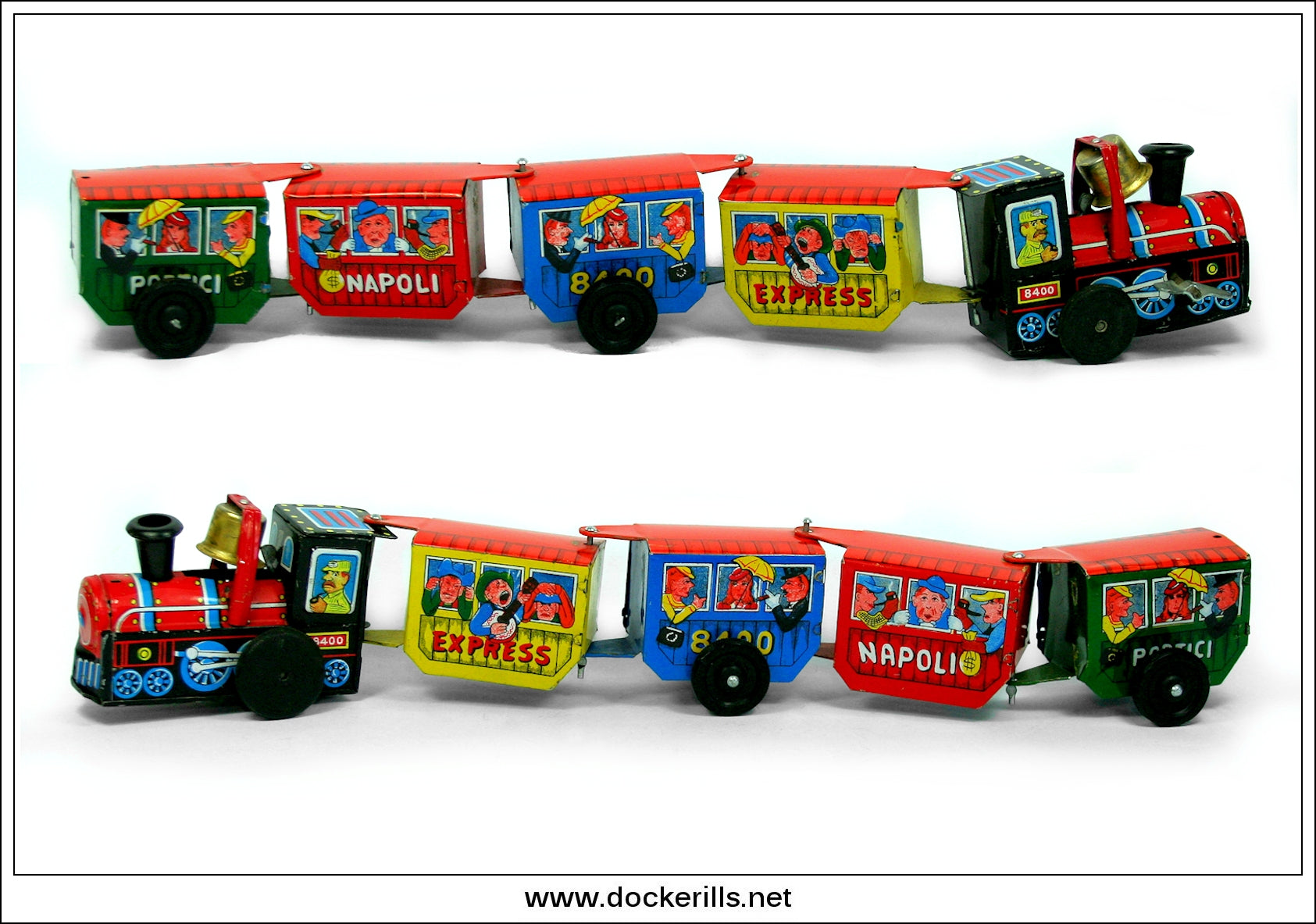 Tin plate 'Napoli 8400 Express' marked with the Dott. G.R. trade mark and 'Made in Japan'. All tin plate apart from chimney / smoke stack and wheels.