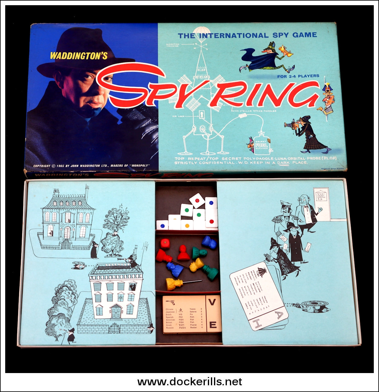 Vintage Waddingtons "Spy Ring" board game from 1965. With all components, counters etc. correct as listed on the rule sheet.