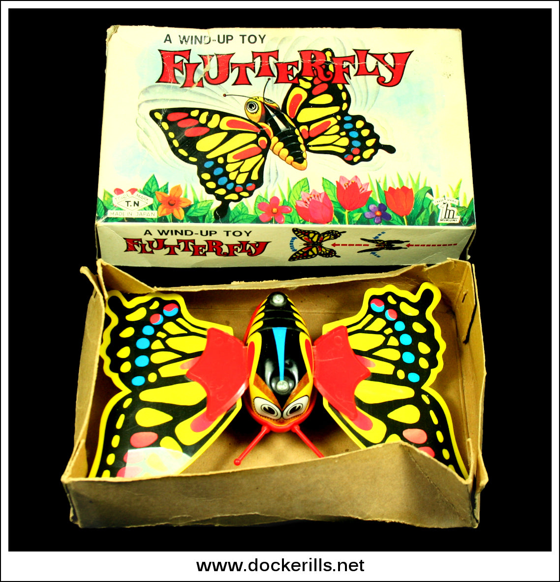 Flutterfly, Novelty Tin Plate Toy. Clockwork / Wind-Up Novelty Toy, Nomura / Mikuni, Japan 1.