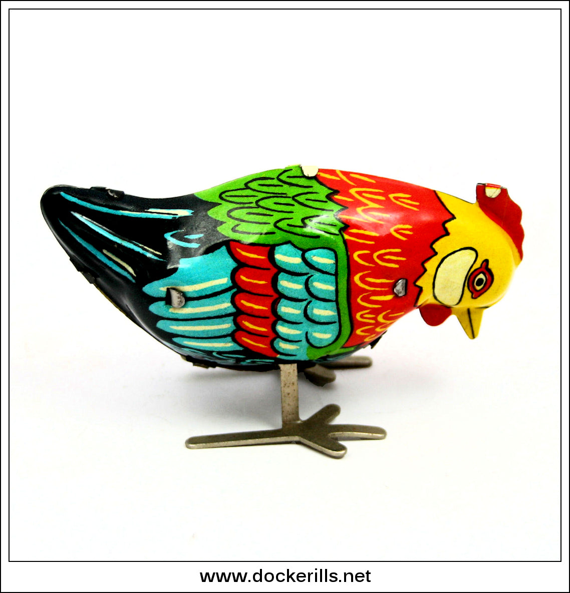 Vintage tin plate clockwork pecking bird toy. Marked "VT". All tin plate. I believe these were made in pre dissolution Czechoslovakia (i.e. older than 1992).